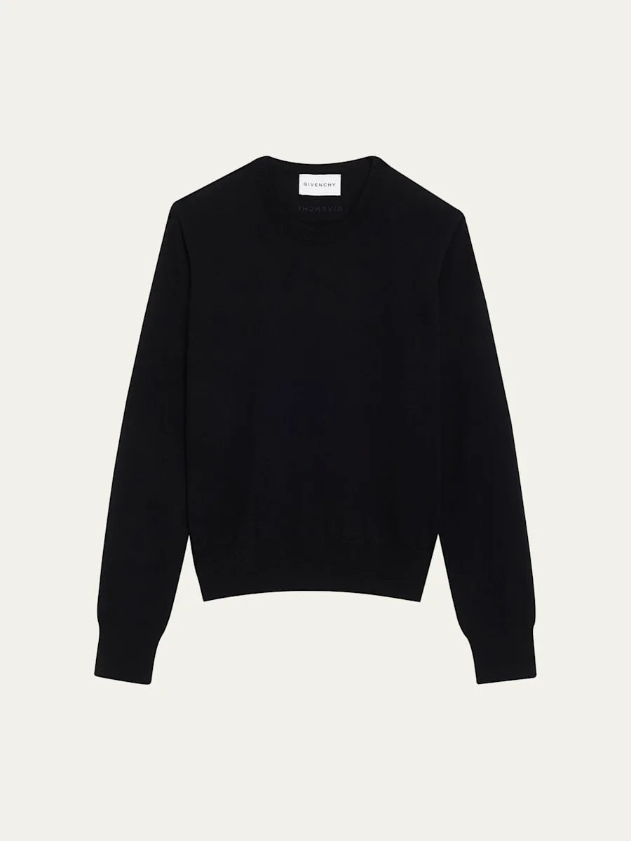 Givenchy sweater is knit in a lightweight cashmere featuring a logo patch on the back Crew neckline Long sleeves Relaxed fit Ribbed cuffs and hem Pullover style Cashmere Made in Italy Online Inquiries: BGS21_BA3FS| Store Inquiries: #5024766