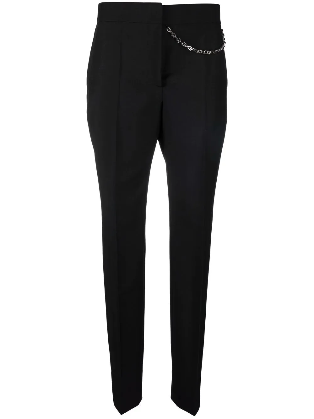 chain-detail tailored trousers Givenchy incorporates its signature edge into a tailored classic. These trousers are cut to a straight leg and feature a chain-link attachment at the waist. Made in Italy Composition Outer: Wool 73%, Mohair 27% Lining: Cotton 100% SIZE & FIT Model measurements Height 5 ft 11 in(1.8 m) Bust/Chest 31.49 in(80 cm) Hips 35.82 in(91 cm) Waist 24.8 in(63 cm) FittingInformation This piece fits true to size. We recommend you get your regular size Cut for a slim fit Made with a mid-weight non-stretch fabric Washing instructions Dry Clean Only
