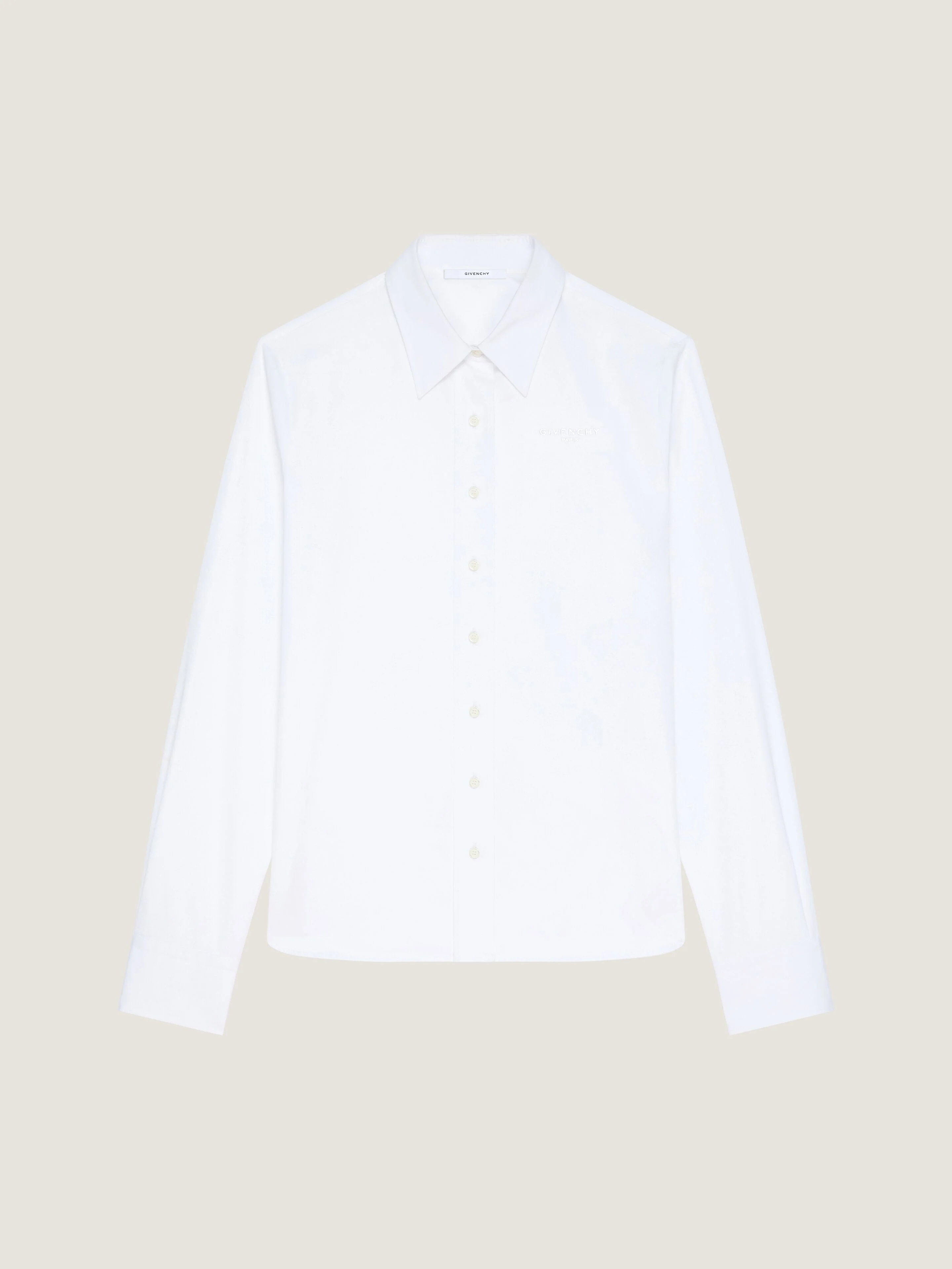 - Long-sleeved shirt in cotton poplin. - Classic collar. - Small GIVENCHY Paris embroidered on the chest. - Button closure. - Buttoned cuffs. - Model measures 5.8 Feet and wears a size 36.
