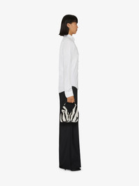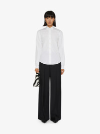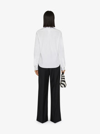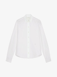 - Classic fit cotton oxford shirt. - Button-down collar. - Long sleeves with GIVENCHY wrist insert detail. - Button placket. - Embroidered 4G tone-on-tone emblem on bottom.