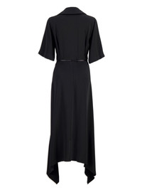 Voyou maxi dress Highlights - Jet black - Satin weave - Detachable and adjustable waist belt - Classic collar - V-neck - Concealed rear zip fastening - Short sleeves - Asymmetric hem Made in Italy Composition Viscose 61%, Acetate 39%