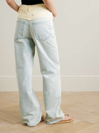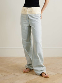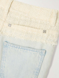 EDITORS'NOTES Givenchy's aptly named 'Big Mix' jeans are made from a combination of contrasting fabrics. They're cut from light-wash denim and have an off-white wool-blend bouclé waistband accented with silver-tone logo plaques. Wear yours with a tucked-in tank to show off the details. SIZE & FIT Model measurements: - Fits true to size, take your normal size - High-rise, cut for a straight-leg fit - Mid-weight, stretchy fabric - Size 26 jeans have an inside leg of 33 "/ 84cm - Model is 177cm/ 5'10" and is wearing a size 26 - Bust: 81cm/ 32" - Waist: 65cm/ 25.5" - Hip: 92cm/ 36" DETAILS & CARE - Light-blue denim, off-white wool-blend bouclé - Button and concealed zip fastening at front - 100% cotton; trim: 94% wool, 6% polyester - Dry clean