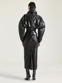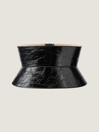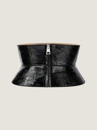 - Corset belt in textured nappa leather. - Tape print. - Zipped closure on the back.