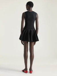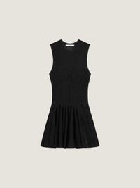 - Sleeveless mini knitted dress in viscose. - Crew neck. - Corset detail and transparency at the top. - Flared skirt. - Model measures 5.8 Feet and wears a size XS.