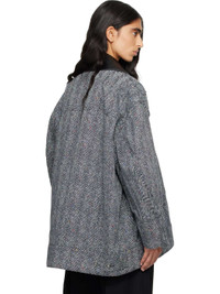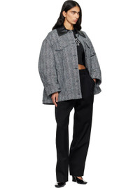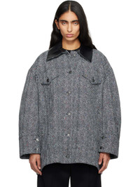 Padded cotton twill jacket. · Herringbone pattern throughout · Polkadot pattern throughout · Grained calfskin spread collar · Button closure · Flap pocket at chest · Welt pockets at front · Barrel cuffs · Adjustable button tabs at back waistband · Quilted taffeta lining Supplier color: Black/White Body 1: 100% cotton. Body 2: 100% calfskin. Lining: 100% polyamide. Fill: 100% polyester. Made in Italy 252278F063004