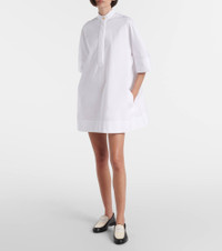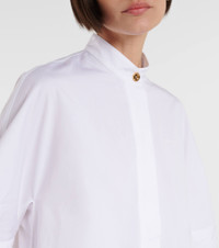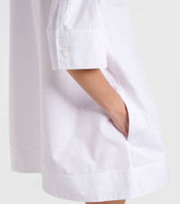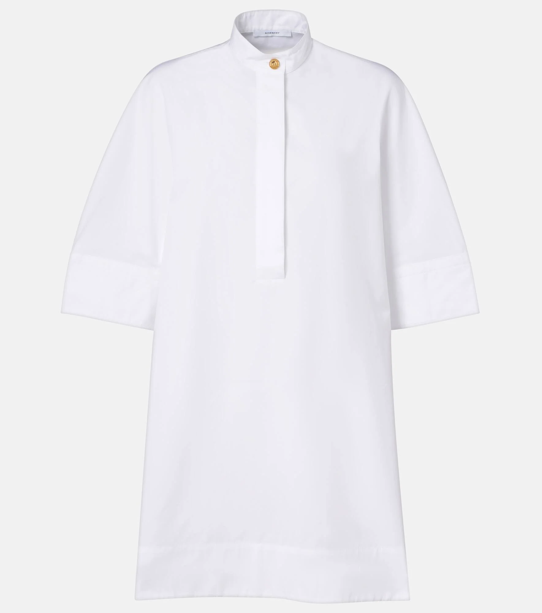 Givenchy brings a modern twist to iconic silhouettes with this shirt dress, crafted from soft poplin. This short-sleeved style features a subtle logo detail at the front, a gold-tone engraved button, and a partially concealed button placket. Product Details - Material: 100% cotton - Care instructions: dry clean - Made in Italy - Designer color name: White - Item color: white - Closure: concealed button placket - Pockets: side slit pockets - Cuff: buttoned - Item number: P01080858 Size & Fit - True to size - Designed for a loose fit - Non-stretchy fabric - Height of model is 175cm-69" and wears a size FR 36
