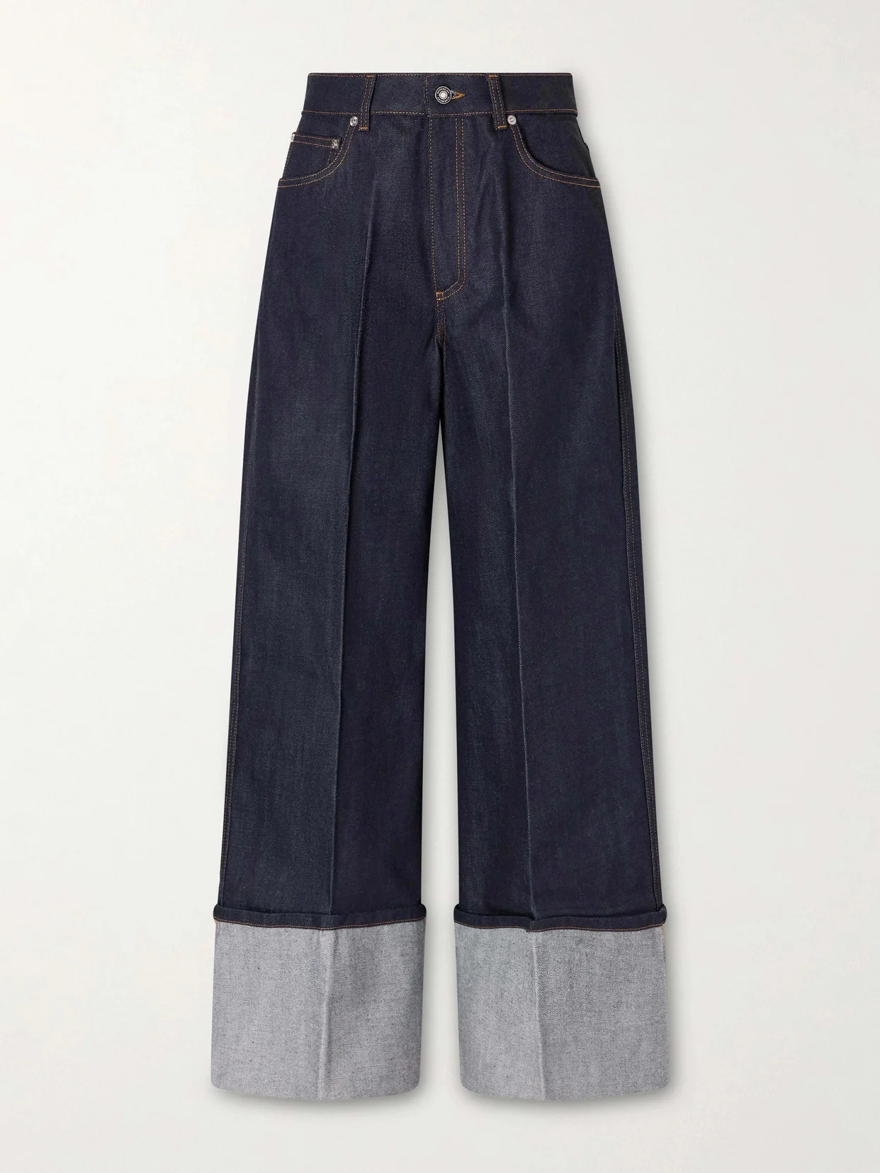 Givenchy's jeans take oversized silhouettes to a sculptural level. Made in Italy from denim, they're detailed with soft creases for a subtly lived-in feel and finished with exaggerated rolled-up cuffs. Take inspiration from the SS26 runway and style yours with a statement top.