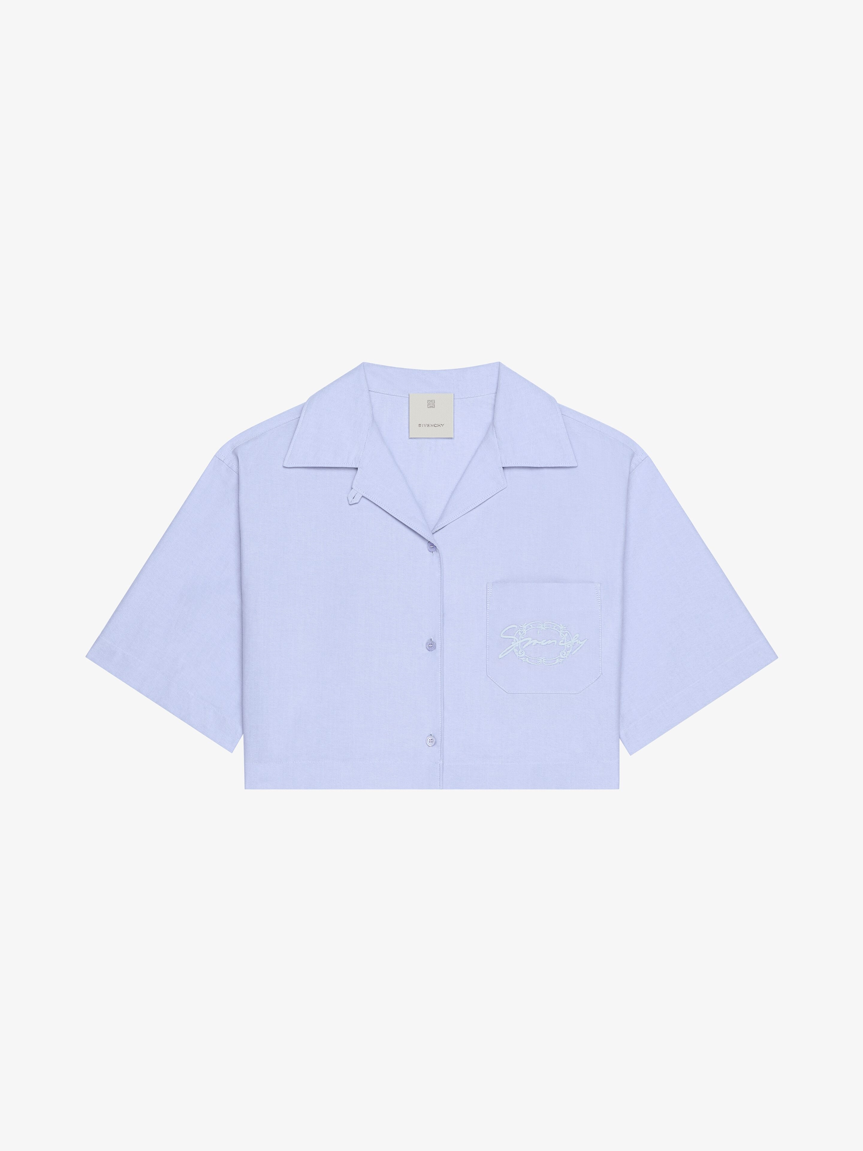 - Short-sleeved shirt in cotton. - Hawaiian collar. - One chest pocket with embroidered GIVENCHY medallion. - Button closure. - Cropped fit. - Model measures 5.8 Feet and wears a size 36.