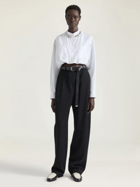 - Long-sleeved shirt in cotton poplin. - Mao collar. - Crystals embroidered on collar. - Button closure. - Buttoned cuffs. - Elastic on the bottom. - Cropped fit. - Model measures 5.8 Feet and wears a size 36.