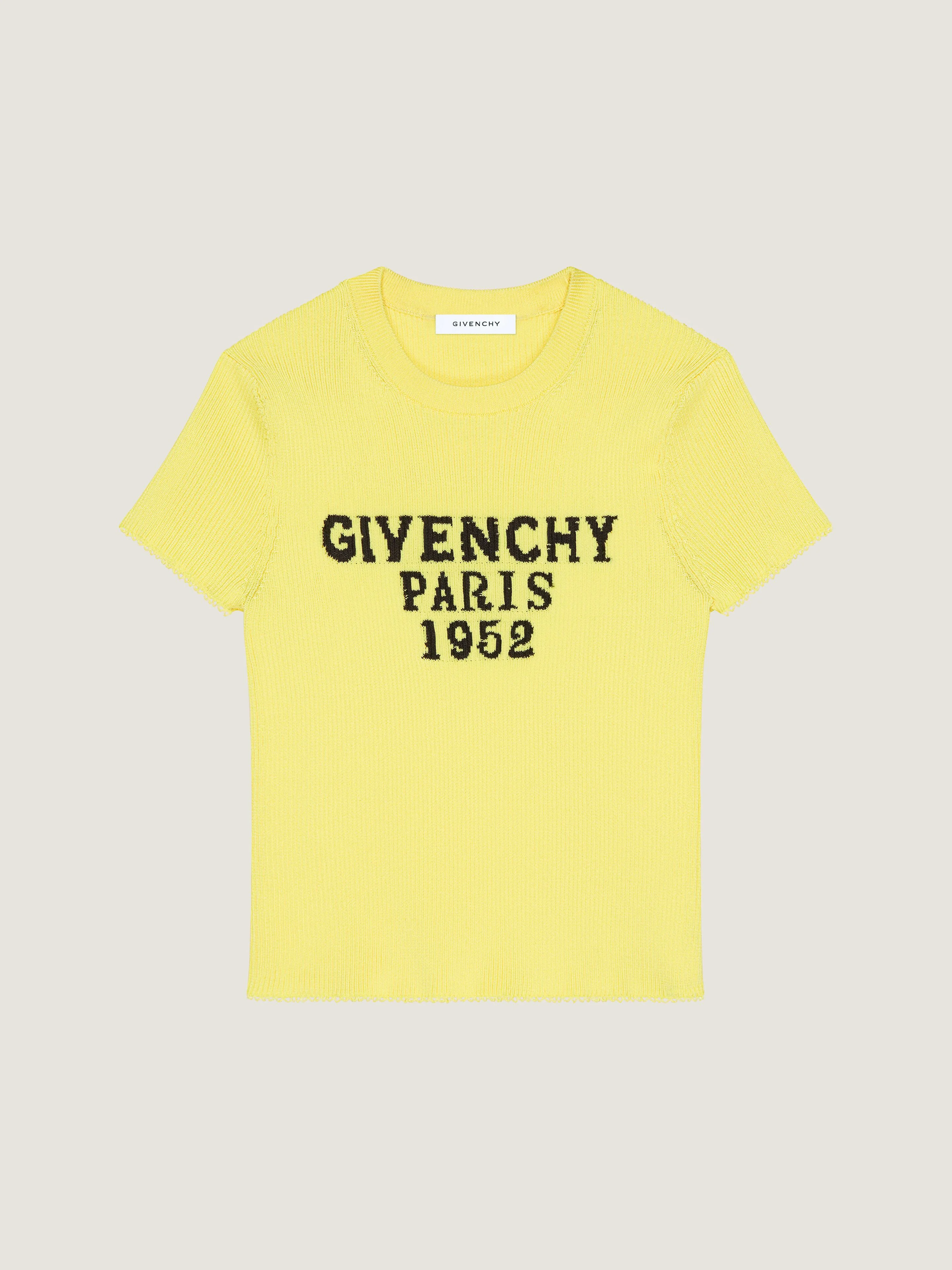 - Short-sleeved knitted top in fine rib. - Crew neck. - GIVENCHY Paris 1952 jacquard on the front. - Cropped fit. - Model measures 5.8 Feet and wears a size XS.