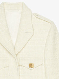 - Jacket in tweed. - Notch lapel. - Golden-finish 4G Liquid metal buttons. - Button closure. - Buttoned cuffs. - Two front flap pockets. - Cropped fit. - Model measures 5.8 Feet and wears a size 36.