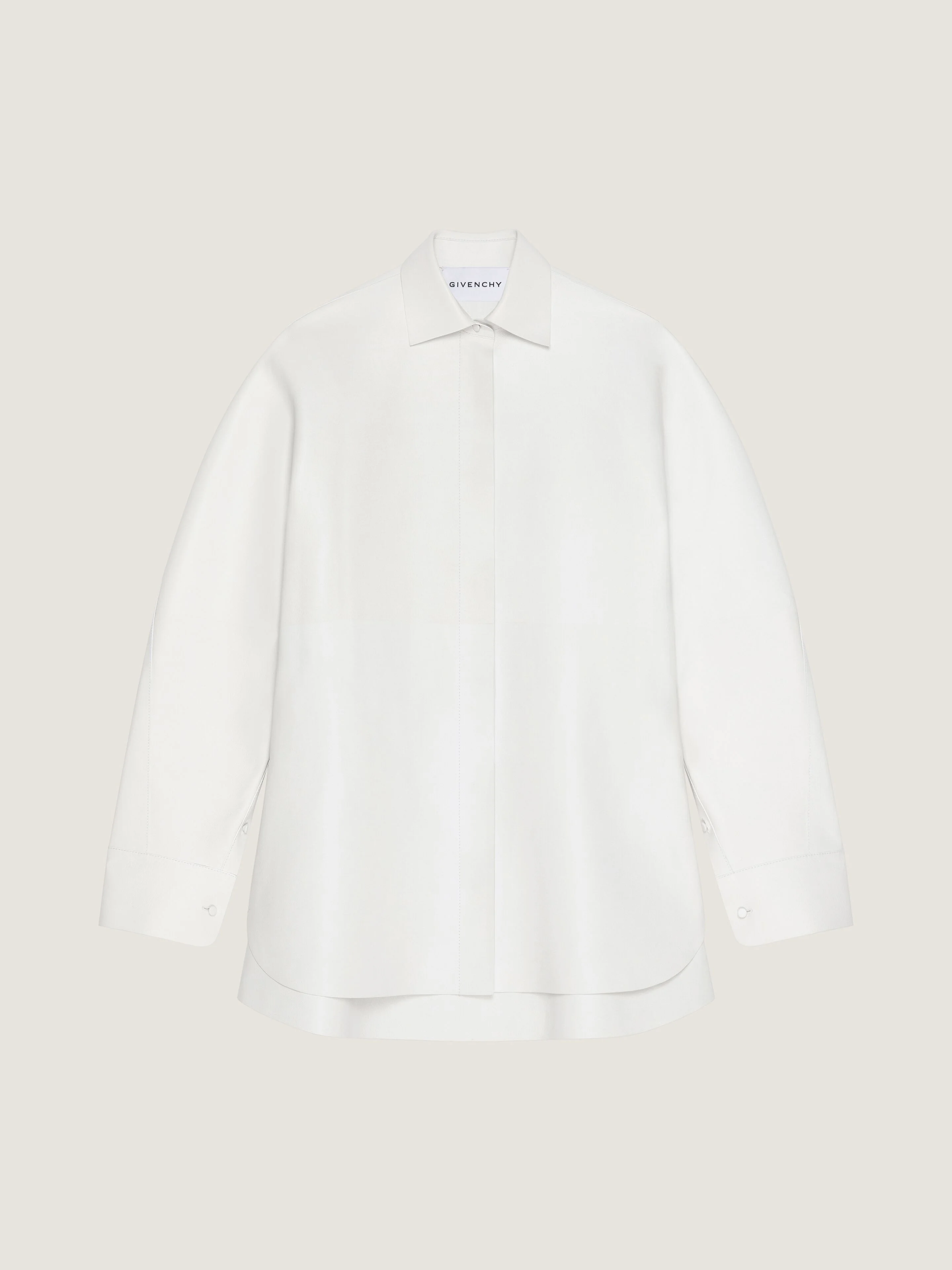 - Long-sleeved overshirt in leather. - Classic collar. - Hidden button closure. - Buttoned cuffs. - Model measures 5.8 Feet and wears a size 36.