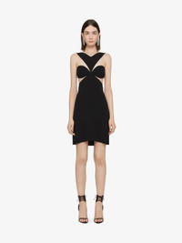 CUT OUT DRESS IN CREPE SATIN WITH RHINESTONES DETAIL