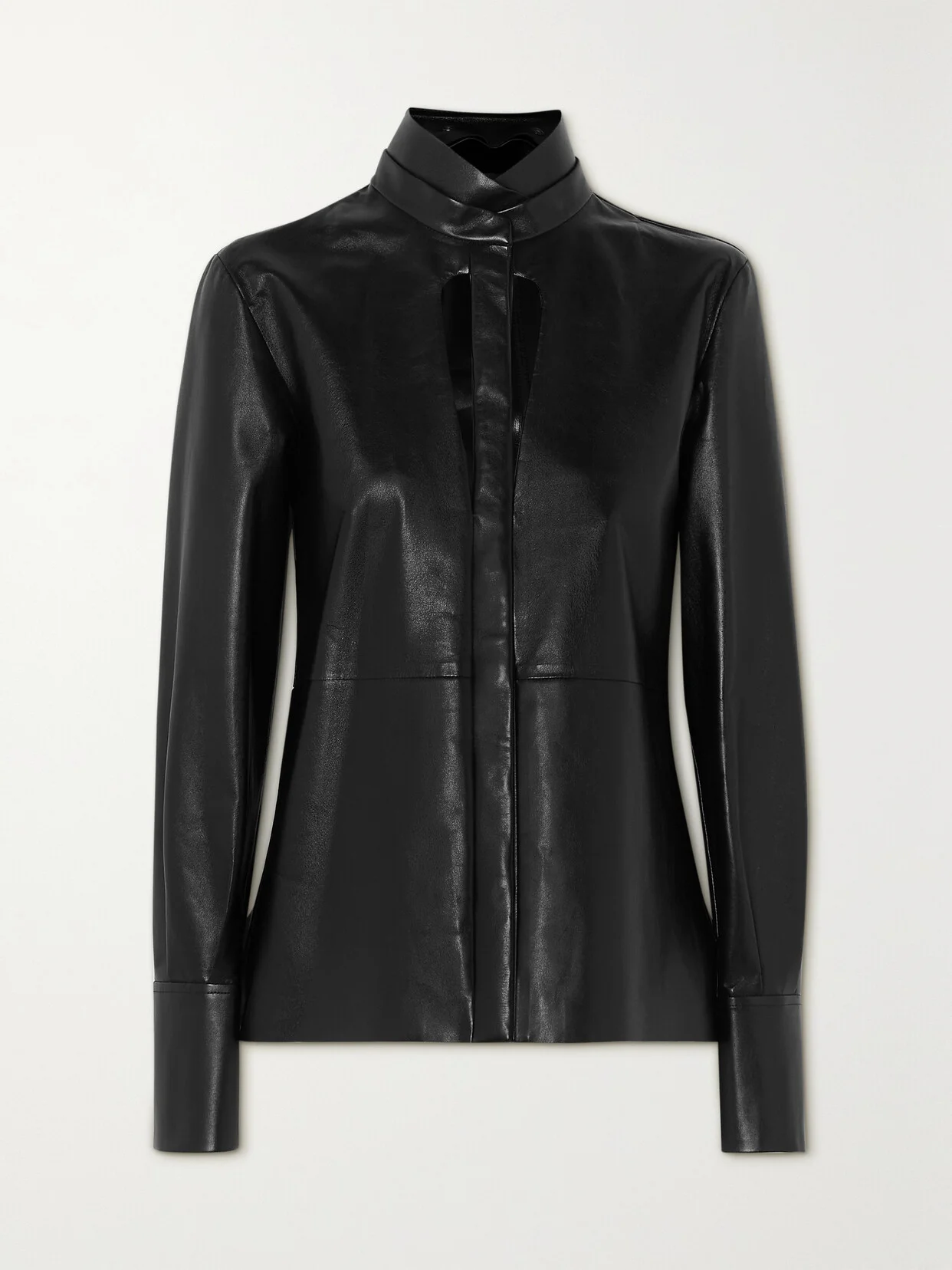 Givenchy's blouse has sleek cutouts that show off a subtle hint of skin. Made from supple leather, it has a paneled neck and slightly loose fit. Wear yours with tonal pants.