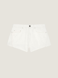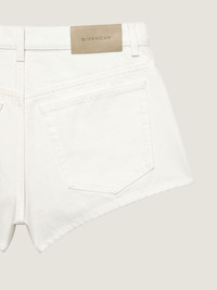 - Mini shorts in denim. - Waist with loops, zipped and button closure. - GIVENCHY engraved button. - GIVENCHY leather patch on the back. - Three front pockets. - Two back pockets. - Model measures 5.8 Feet and wears a size 26.