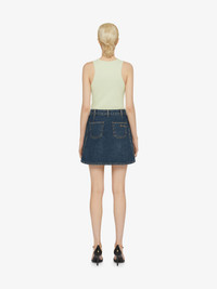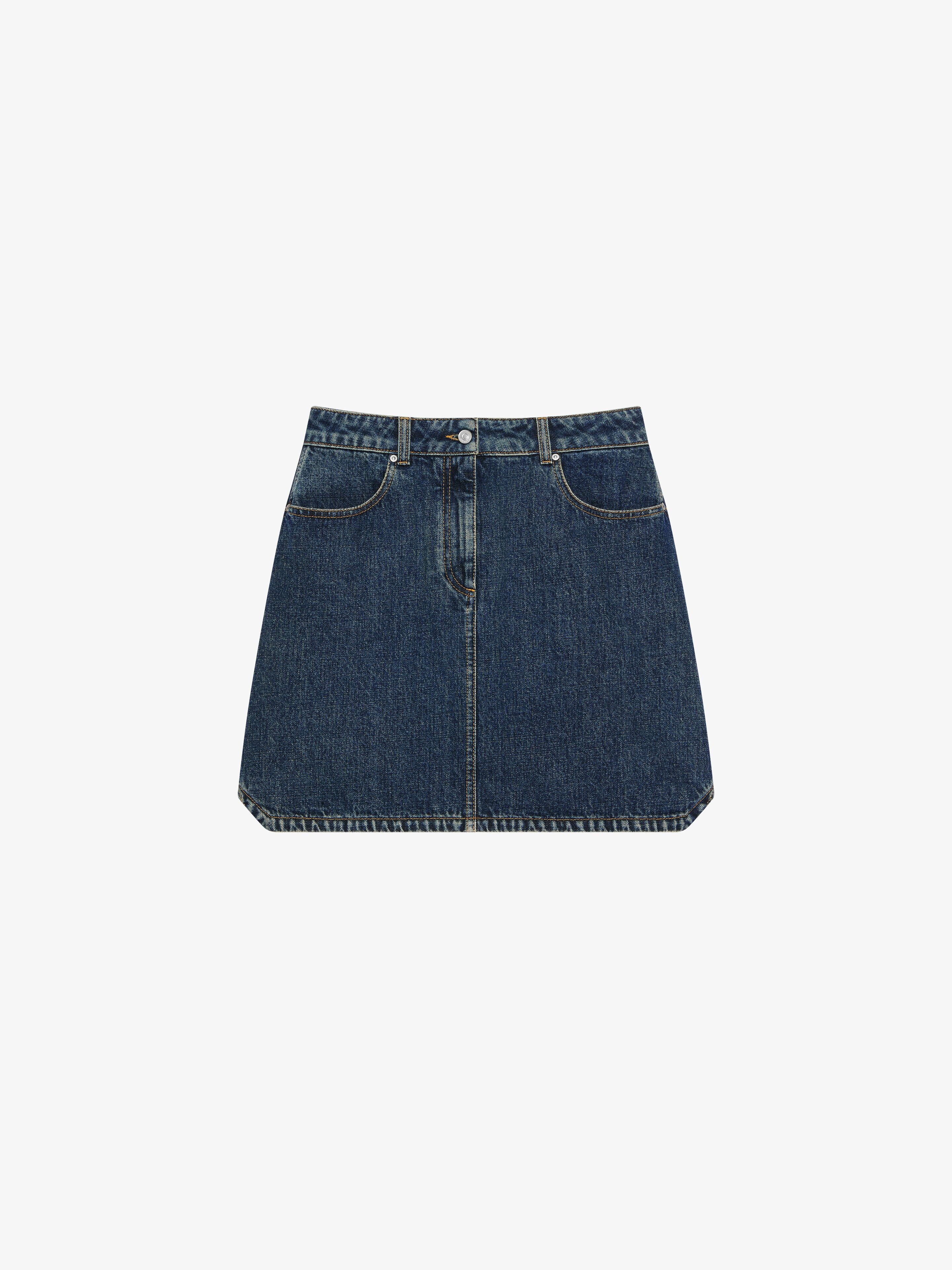 - Mini skirt in denim. - Waist with loops, zipped and button closure. - Small GIVENCHY signature embroidered on the back. - Two front pockets. - Two back pockets. - Model measures 5.8 Feet and wears a size 36.
