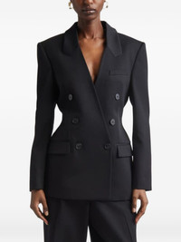 double-breasted blazer Highlights - Black - Button fastening - Notched lapels - Chest welt pocket - Front flap pockets - Long sleeves Made in Italy Composition Wool 100% Washing instructions Read Manufacturer Guidelines