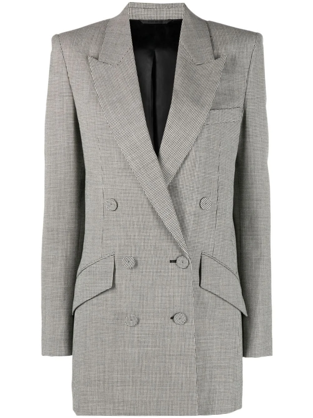 dogtooth-pattern wool blazer Highlights - Black/white - Wool - Dogtooth pattern - Dart detailing - Wide peak lapels - Double-breasted button fastening - Shoulder pads - Long sleeves - Buttoned cuffs - Chest welt pocket - Two front flap pockets - English rear vents - Straight hem - Logo-jacquard lining Made in Italy Composition Outer: Wool 100% Lining: Cupro 100%