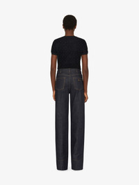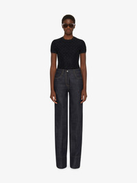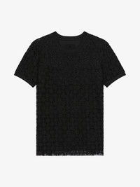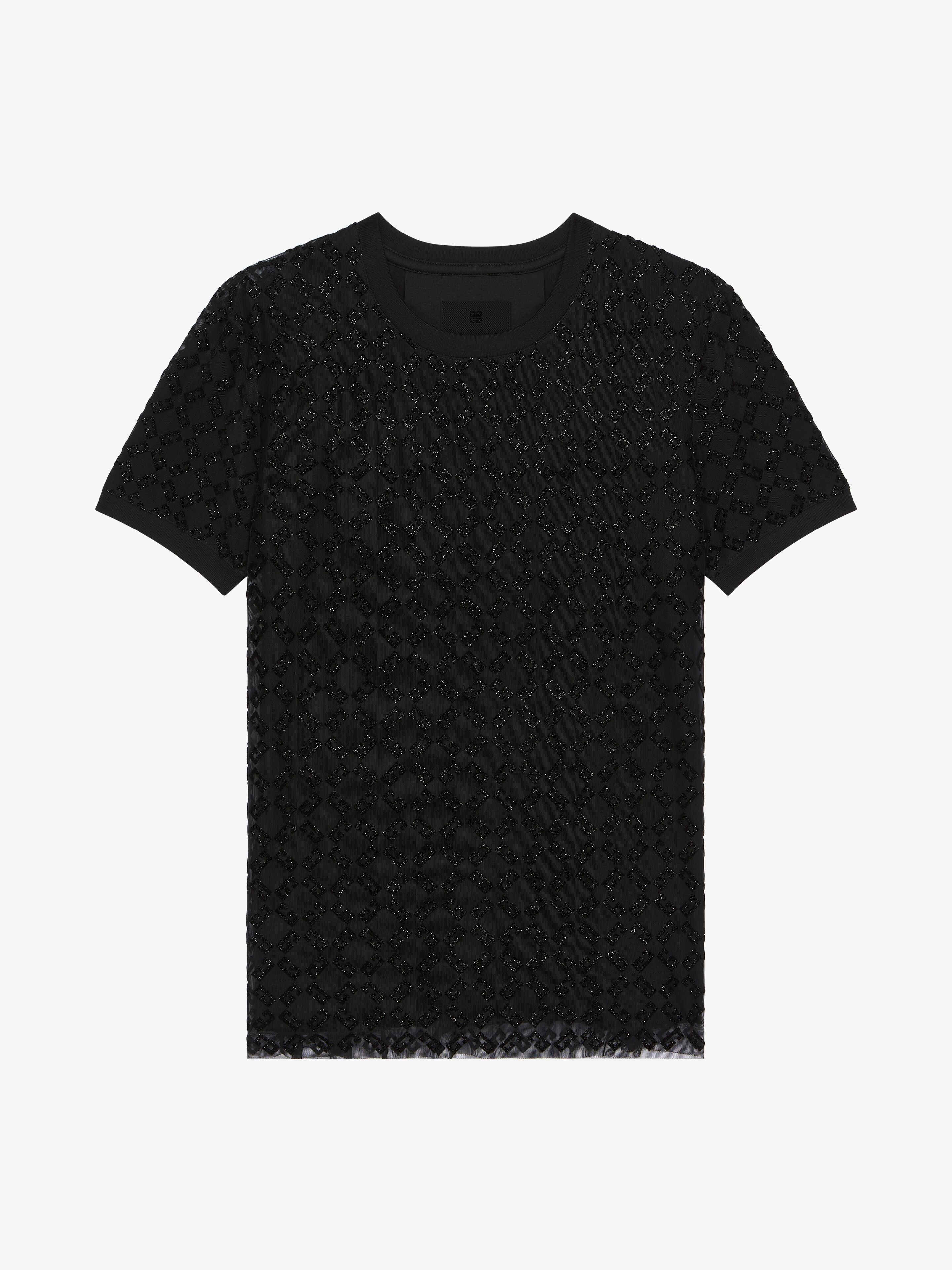 - Double-layered short-sleeved t-shirt in cotton and tulle. - Crew neck. - Shiny monogram 72 in flocked velvet on tulle. - Visible ribbed collar and bottom sleeves. - Slim fit. - Model measures 5.8 Feet and wears a size XS.