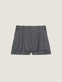 - Double pleat shorts in wool. - Elastic band on the back. - Zipped closure. - Two side pockets. - One back pocket. - Model measures 5.8 Feet and wears a size 36.