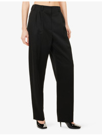 PRODUCT DETAILS - Givenchy wool trousers - 100% wool - Button, hook-and-eye and zip-fly fastening - Regular fit, mid-rise, dropped crotch, elasticated waistband at back, tapered leg, two slip pockets at sides, one buttoned welt pocket at back, pressed pleat at front and back - Dry clean - Made in Italy - True to size - Size UK 8: rise 13in / 33cm, inside leg 32in / 81.2cm, leg opening 17in / 43cm - Model is 5ft 10in/1.78m and wears a size UK 8 - Midweight, non-stretch Ref: R04557395