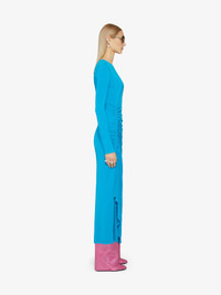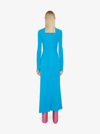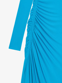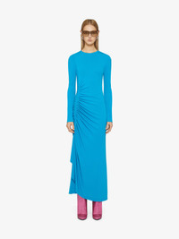 - Long dress with long sleeves in crepe. - Draped on the side. - Crew neck. - Invisible zipped closure with small hook on the back.