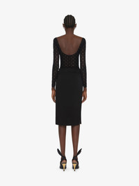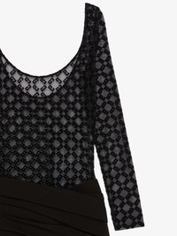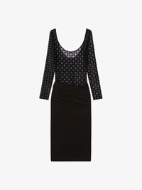 - Mid-length bi-material dress with long sleeves. - Crew neck. - Top in tulle with monogram 72 in flocked velvet. - Jersey skirt. - Draped on the waist. - Low back. - Invisible zipped closure on the side. - Slit on the side. - Fitted cut. - Model measures 5.8 Feet and wears a size 36.