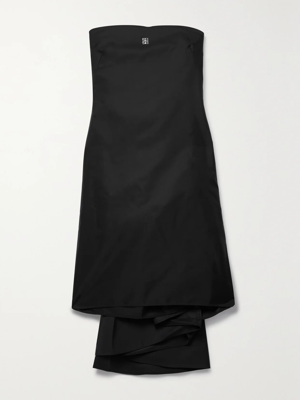 Givenchy's dress has a draped back panel, giving the mini style a sweet train. It's cut from glossy twill and has a strapless neckline embellished with the label's iconic logo. The light boning provides gentle support.