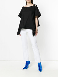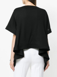 draped hem T-shirt Infused with the label’s signature dark romanticism and urban styling, French fashion house Givenchy was originally founded in 1952 by acclaimed couturier Hubert de Givenchy. Under the creative direction of Clare Waight Keller, the cult label continues to celebrate the label’s house codes through sharp tailoring and expert craftsmanship. This black silk blend draped hem T-shirt from Givenchy features a boat neck, short sleeves and an asymmetric hem. Made in Italy Composition Viscose 81%, Silk 19% SIZE & FIT Model measurements Height 5 ft 10 in(1.77 m) Bust/Chest 35.03 in(89 cm) Hips 35.03 in(89 cm) Waist 23.62 in(60 cm) Washing instructions Dry Clean Only