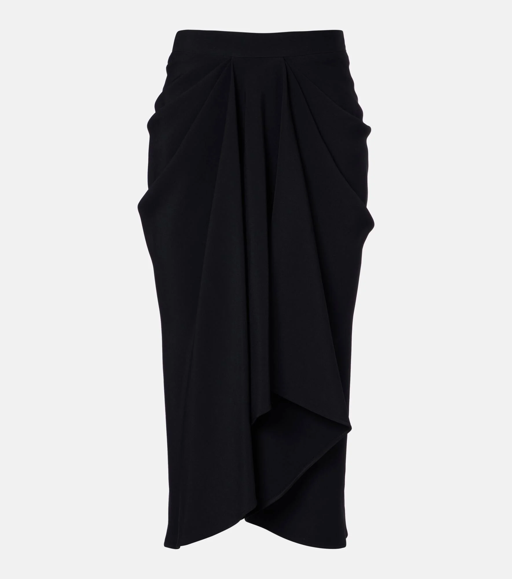 Givenchy's precise and timeless aesthetic echoes the elegant silhouettes of the brand’s early years. This midi skirt boasts elegant draping at the front, adding volume to the ensemble. Product Details - Material: 65% viscose, 32% acetate, 3% elastane - Care instructions: dry clean - Made in Italy - Color: black - Designer color name: Black - Lining: 74% acetate, 26% silk - Closure: concealed zipped back - Item number: P01124948 Size & Fit - True to size - Non-stretchy fabric - High-waisted - The model seen in the picture is 178cm-5'10" and wearing a size FR 36
