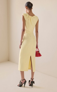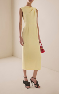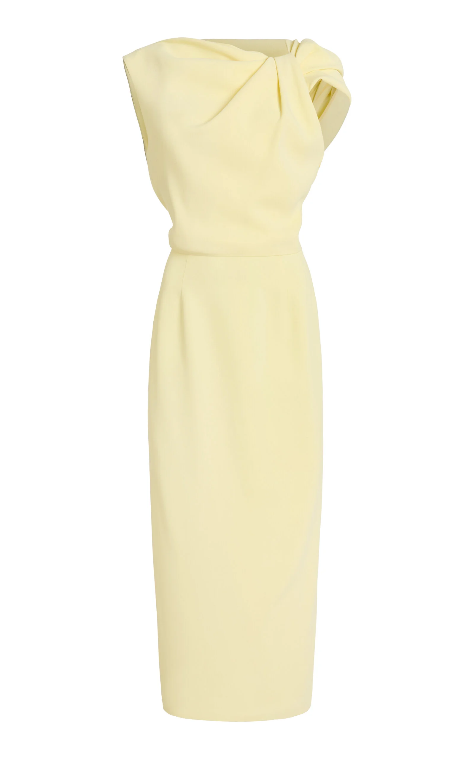 In 1952, Hubert de Givenchy revolutionized women's fashion with an easy, elegant, and architectural approach to dressing. Under the creative direction of Sarah Burton, today the house honors a legacy of couture-cut silhouettes, sharp tailoring and excellence of craftsmanship. Tailored from crepe, this classic pencil dress is updated by draped, twist detailing across the shoulder, creating an asymmetric bodice. It’s cut for a close fit through the frame, finishing at a mid-length. Lean into buttery hues with matching shoes and accessories. PRODUCT DETAILS - Fall/Winter ‘25 - Concealed zip fastening - Composition: crepe - Dry clean - Designer Color: Butter - Made in France SIZE & FIT - Our model is wearing a size FR 34 - Model is 5'11" with a 30" bust, 24" waist, and 34" hip