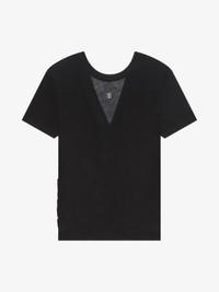 - Short-sleeved t-shirt in transparent cotton jersey. - Crew neck. - 4G metal piece on the front. - Draped open back. - Classic fit. - Model measures 69.7 in and wears a size XS.