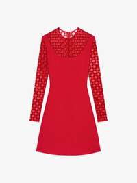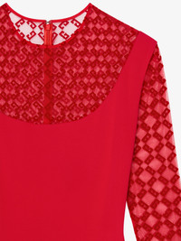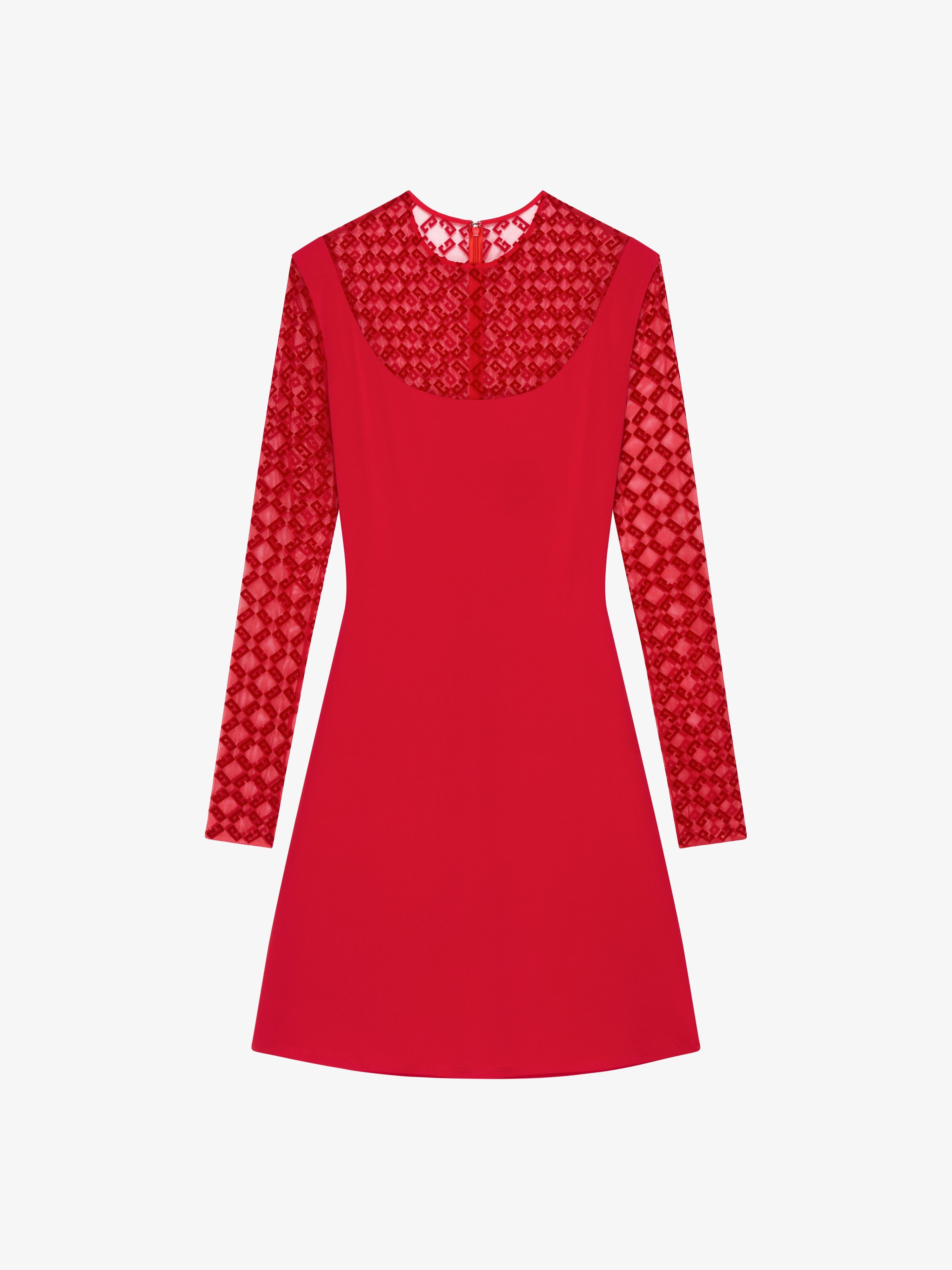 - Short dress with long sleeves in jersey and tulle. - Crew neck. - Tulle with monogram 72 in flocked velvet. - Invisible zipped closure on the back. - Model measures 5.8 Feet and wears a size 36.