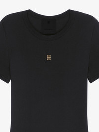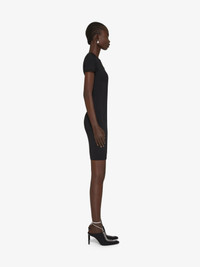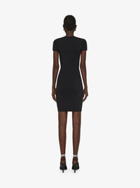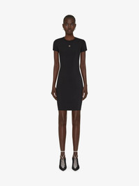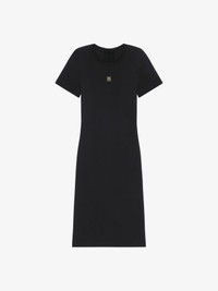 - Mid-length short-sleeved dress in knit rib. - Round collar. - 4G emblem in silvery metal on the front. - Fitted cut.