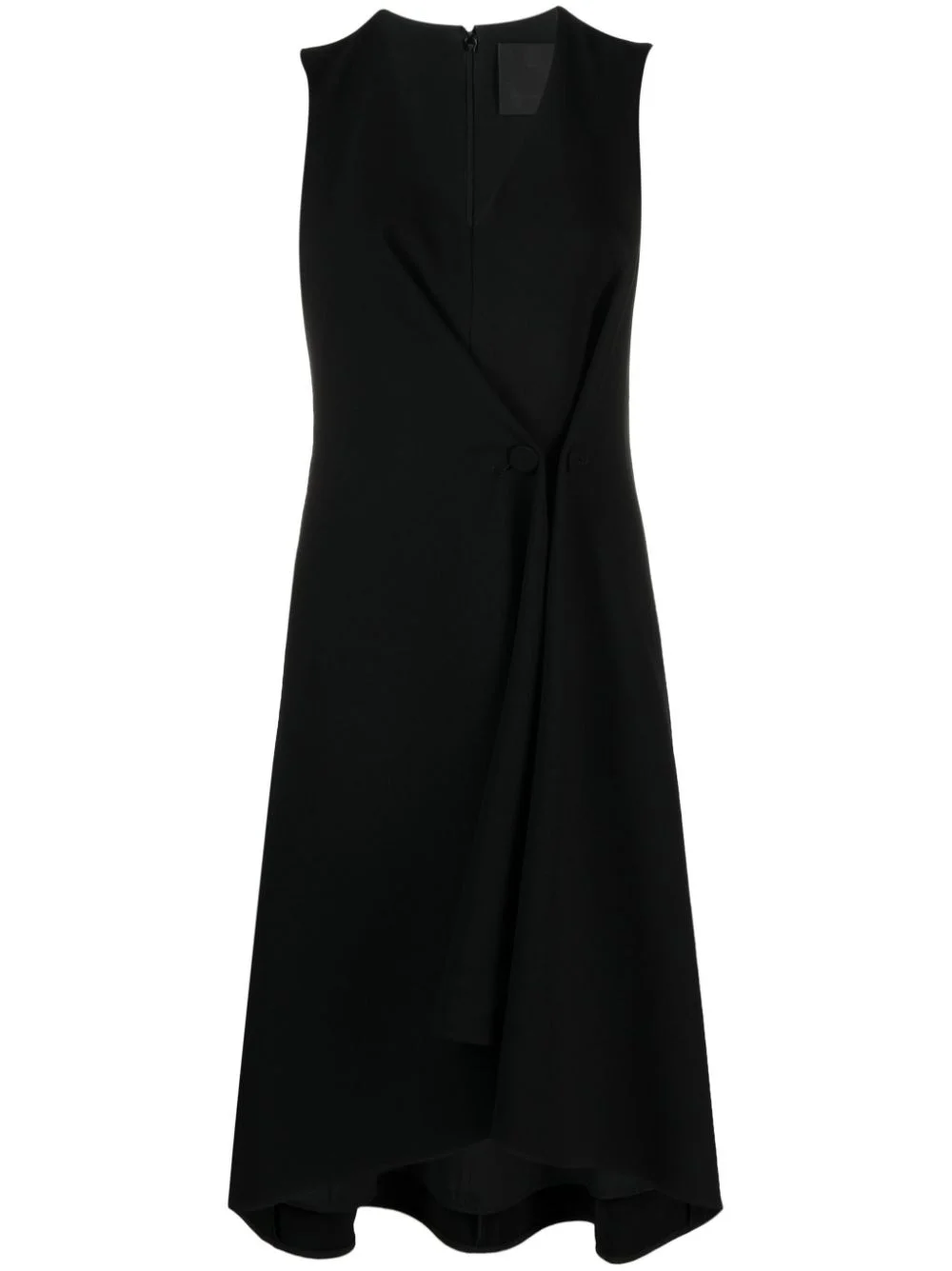 pleated buttoned cady dress Highlights - Black - Silk blend - Cady texture - Flared - Pleat detailing - V-neck - Side button fastening - Concealed rear zip fastening - Sleeveless - Asymmetric hem - Knee-length Made in Italy Composition Outer: Acetate 60%, Polyester 40% Lining: Acetate 73%, Silk 27% Washing instructions Dry Clean Only