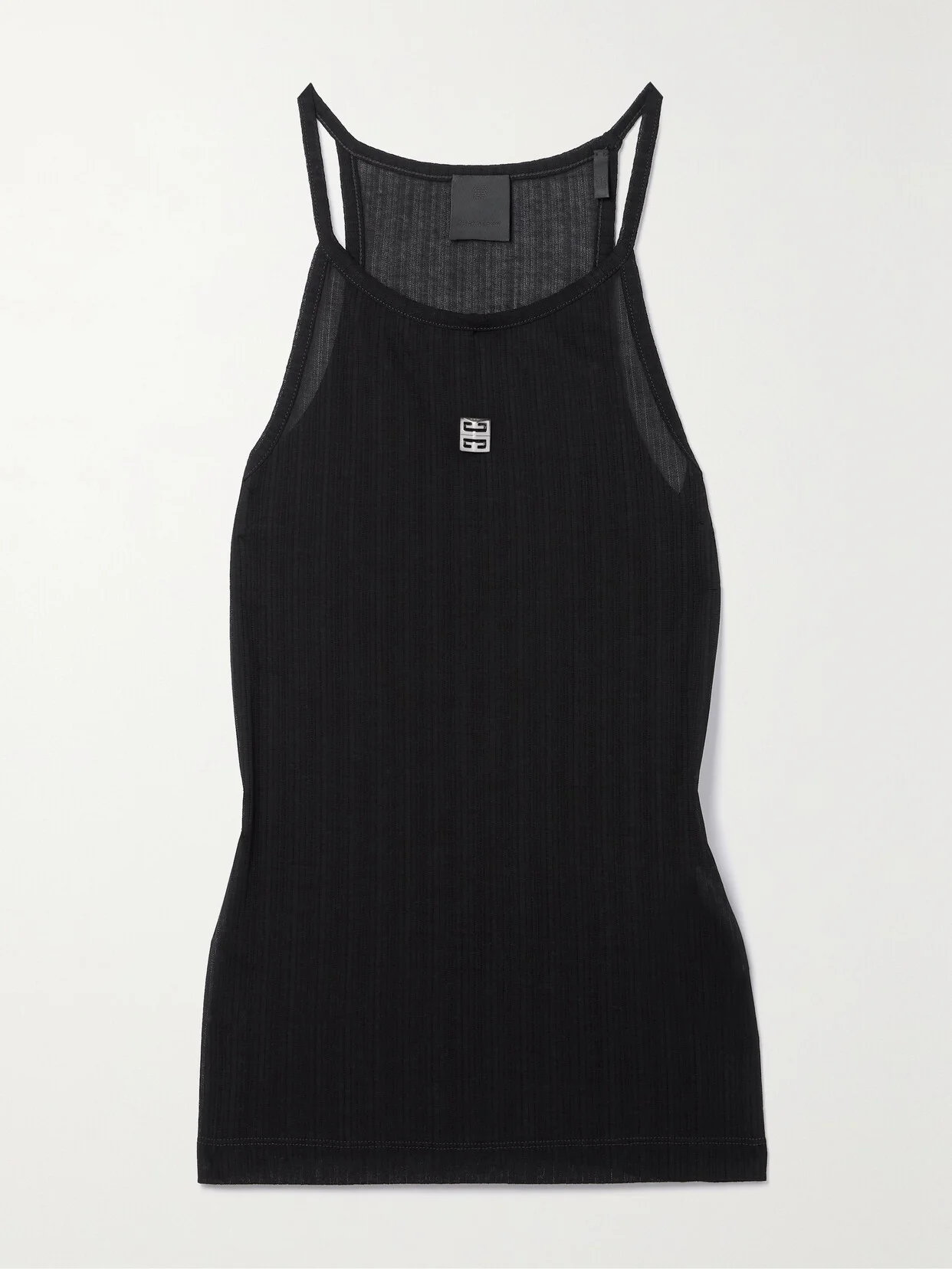 Givenchy's tank was styled over a turtleneck top for the Fall '23 runway, which tempered its semi-sheer finish. It's made from lightweight ribbed cotton for a close fit and has slim straps and a silver-tone '4G' logo plaque at the front.