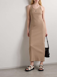 Embellished ribbed stretch-cotton midi dress