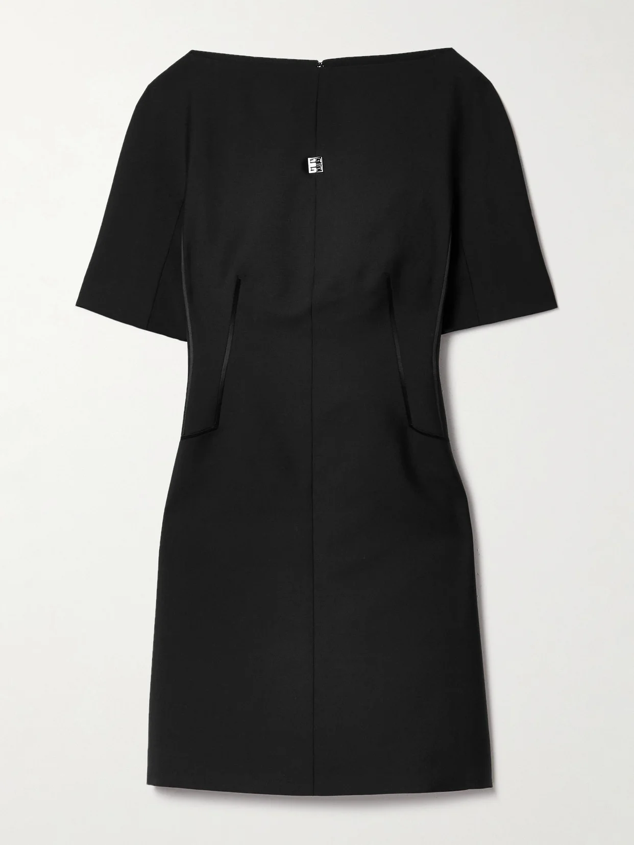 The refined details of Givenchy's mini dress bring an elevated feel to a traditional LBD. Made in Italy from wool and mohair-blend, it has short cap sleeves and a small G-cube embellishment beneath the boat neckline. The contouring seams are detailed with subtle silk trims that add a touch of luster.