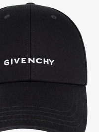 - Cap in cotton twill with embroidered GIVENCHY signature. - Curved brim. - 4G emblem embroidered on the back. - Tab with GIVENCHY-engraved metal buckle on the back.