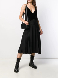 flared slip dress The House of Givenchy continues to reinterpret and reinvent the codes of elegance and romanticism for a new generation. Case in point: this black silk flared slip dress. Featuring a deep V neck, spaghetti straps, a lace detail, pleated details and a mid-length. Made in Italy Composition Outer: Silk 100%, Viscose 58%, Acetate 42% Lining: Silk 100% SIZE & FIT Model measurements Height 5 ft 10 in(1.77 m) Bust/Chest 35.03 in(89 cm) Hips 35.03 in(89 cm) Waist 23.62 in(60 cm) Washing instructions Dry Clean Only