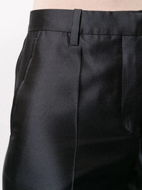 flared tailored trousers The Givenchy woman means business. Made from a wool-silk blend, these midnight-blue flared trousers have been cut for a slightly cropped length and are designed for a tailored aesthetic. No need to make power moves when your outfit is doing it for you. Highlights - Midnight blue - Silk-wool blend - Flared leg - Belt loops - Concealed front fastening - Two side slit pockets - Rear welt pocket - Slightly cropped length Made in Italy Composition Outer: Wool 56%, Silk 44% Lining: Cotton 100% SIZE & FIT Model measurements Height 5 ft 10 in(1.77 m) Bust/Chest 35.03 in(89 cm) Hips 35.03 in(89 cm) Waist 23.62 in(60 cm) FittingInformation This piece fits true to size. We recommend you get your regular size Designed to be fitted at the waist and hips, loose over the leg Made with a mid-weight non-stretch fabric Washing instructions Dry Clean Only