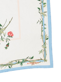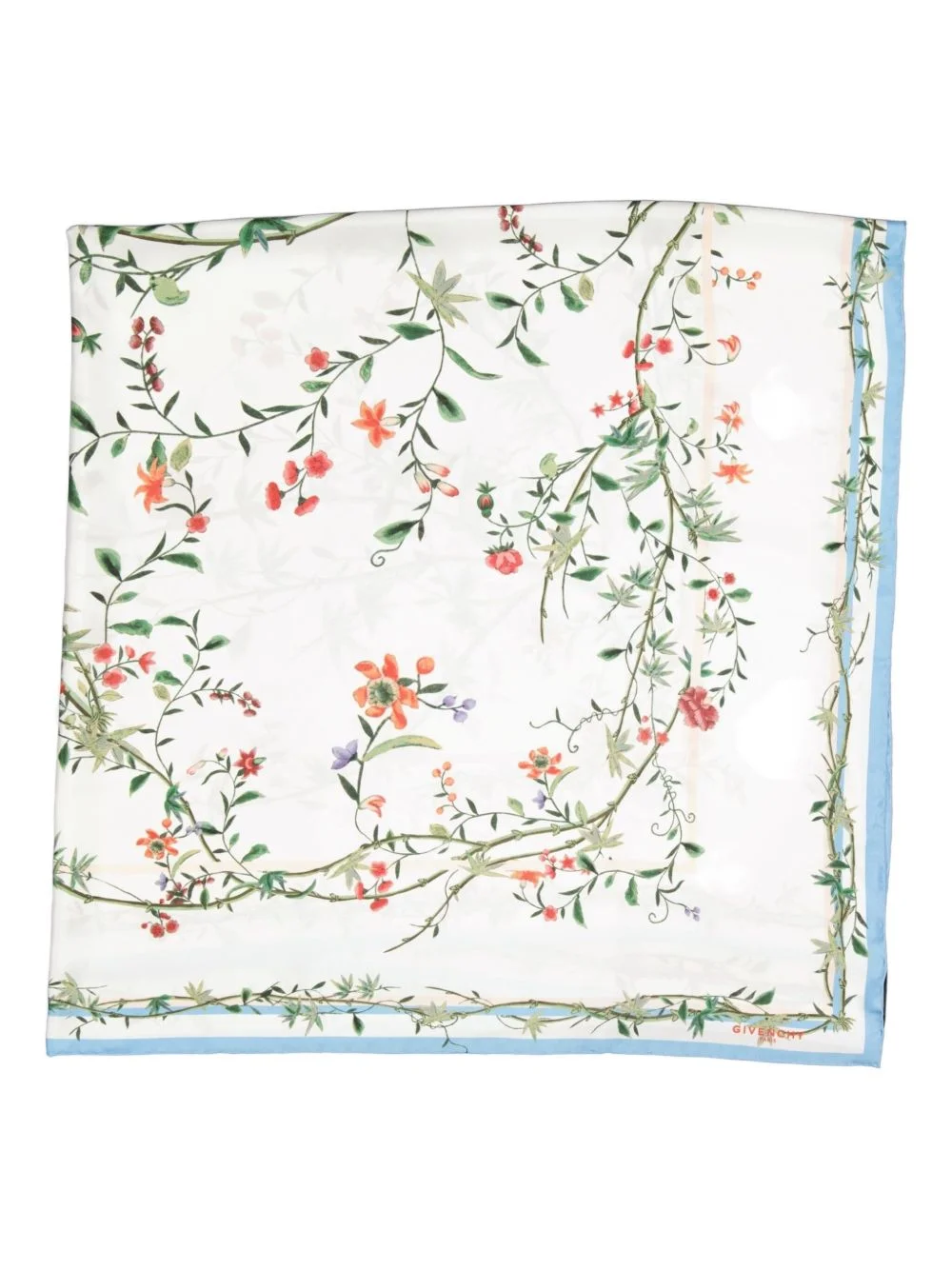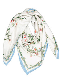 floral-print silk scarf Highlights - Light blue - Floral print - Rolled edges - Silk - Logo print - Light-blue border Made in Italy Composition Silk 100% SIZE & FIT Measurement LENGTH 35.43 in(90 cm) WIDTH 35.43 in(90 cm) Washing instructions Read Manufacturer Guidelines