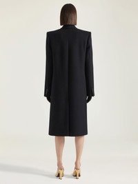 - Coat in wool. - Pointed collar. - Button closure. - Buttoned cuffs. - One chest pocket. - Two front pockets. - Satin lining. - Model measures 5.8 Feet and wears a size 36.