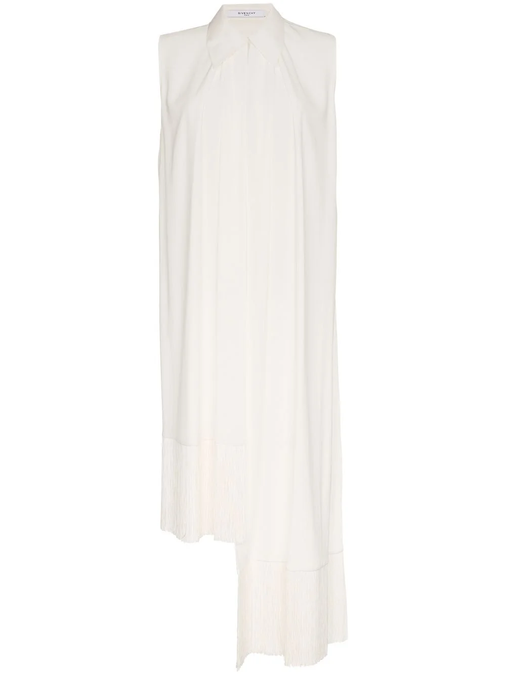 Fringe-trimmed Silk-crepe Top Being Givenchy’s first ever female creative director surely didn’t get in Clare Waight Keller’s way. Givenchy continues to be dark, daring and dramatic. Crafted in Italy, this white silk-crepe blouse from Givenchy features a classic collar, a sleeveless design, a front button fastening, an asymmetric hem and a fringe trimming. Made in Italy Composition Silk 100% SIZE & FIT Model measurements Height 5 ft 9 in(1.75 m) Bust/Chest 32.67 in(83 cm) Hips 36.22 in(92 cm) Waist 24.8 in(63 cm) Measurement LENGTH 23.22 in(59 cm) Washing instructions Dry Clean Only