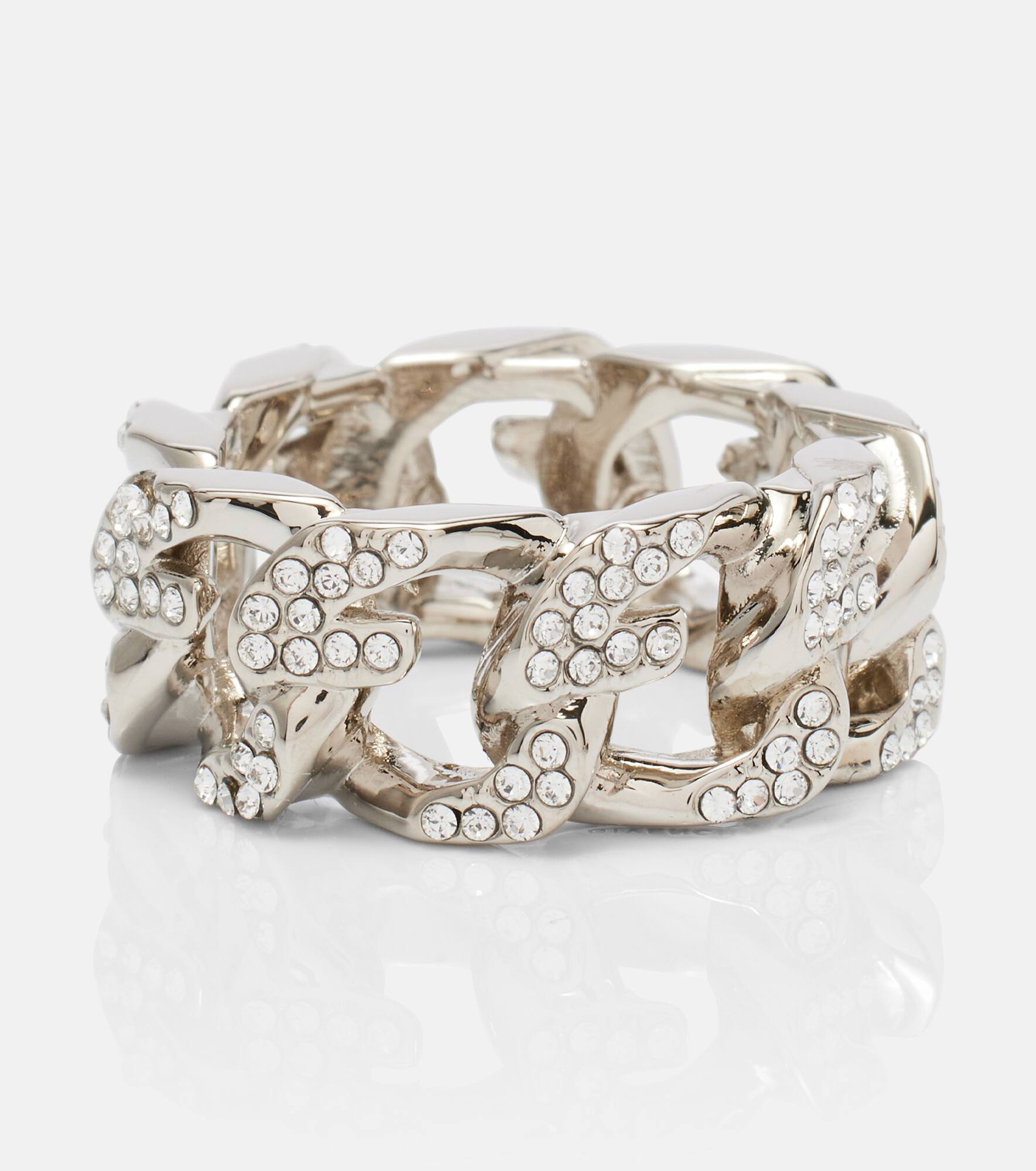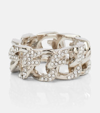 Part of Givenchy's G Chain line, this silver-tone ring is dusted with Swarovski® crystals in a pave setting. A statement piece for your jewelry rotation, it lends all looks a dose of shimmer. Product Details - Material: brass - Made in Italy - Item color: silver - Designer color name: Silvery - Includes: box - Item number: P01053720 Size & Fit - Width 1cm-0.5"