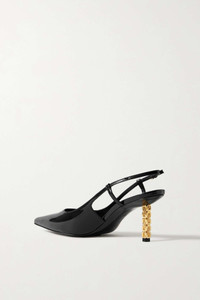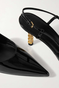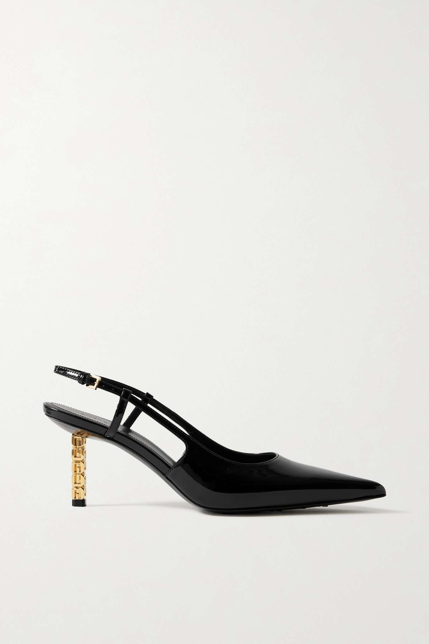 EDITORS'NOTES Givenchy's pumps are set on sculptural 'G Cube' heels cast from polished gold-tone metal. They're crafted from black leather with a glossy, patent finish. Adjust the slingback strap for a secure fit. SIZE & FIT - Fits true to size, take your normal size - Italian sizing DETAILS & CARE - Heel measures approximately 70mm/ 3 inches - Black patent-leather (Calf) - Buckle-fastening slingback strap