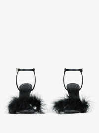- Sandals in nappa leather and turkey feathers. - G Cube line. - Thin leather strap with silvery finish G buckle. - G Cube iconic sculpted heel in silvery finish. - Leather insole with GIVENCHY 4G signature. - GIVENCHY 4G signature on the outsole. - Heel height: 4.1 in