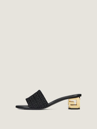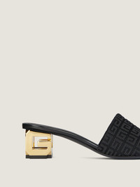 - Mules in embroidered canvas. - G Cube line. - Raised 4G pattern all-over. - GIVENCHY signature debossed on the leather insole. - Golden-finish metal details. - Square G Cube iconic sculpted heel. - Heel height: 1.8 in.