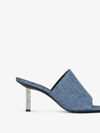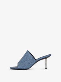 - Mules in denim. - G Cube line. - Thin G Cube iconic sculpted heel in silvery finish. - GIVENCHY PARIS signature and 4G emblem all-over under the outsole. - Leather insole with GIVENCHY signature. - Heel height: 2.8 in.