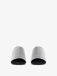 - Mules in satin with strass all-over. - G Cube line. - Thin G Cube iconic sculpted heel in silvery finish. - GIVENCHY PARIS signature and 4G emblem all-over under the outsole. - Leather insole with GIVENCHY signature. - Heel height: 2.8 in.